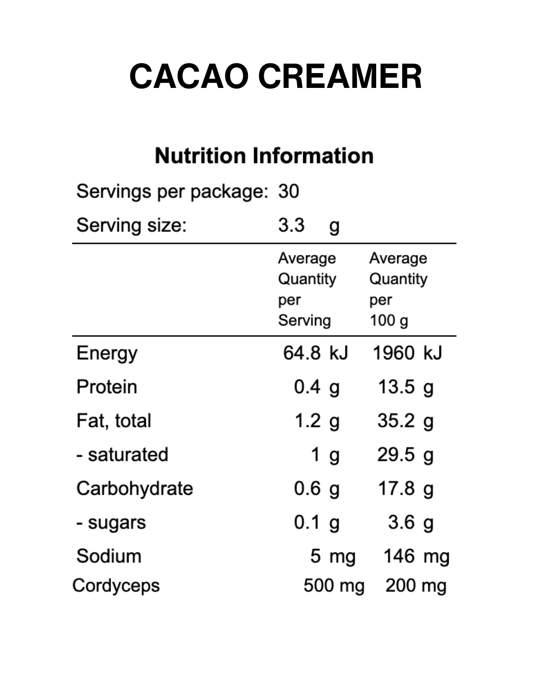 Coffee Creamer + Adaptogens (Cacao & Cordyceps)